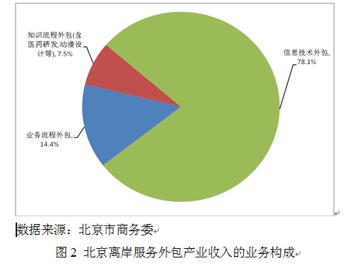 信息技术外包(ITO)领域,是北京市的传统优势领域。2010年,北京ITO离岸业务执行额达12.01亿美元,占整体份额比例近八成(78.1%)(如图2所示)。
