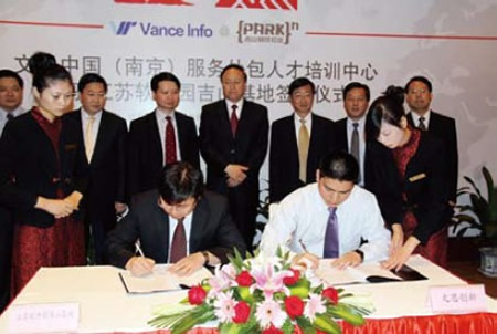 2009年6月25日,文思信息技术有限公司南京服务外包人才培训中心成功签约,正式进驻位于江宁开本地化和全球化、基础设施外包以及业务流程外发区的江苏软件园吉山基地。