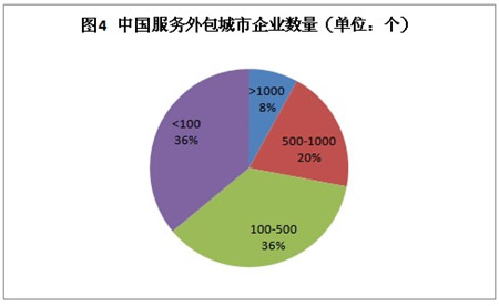 3.中国服务外包城市企业数量以中小规模居多,缺乏大规模的城市