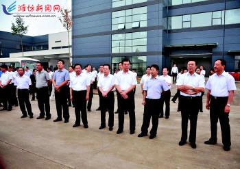 6月29日,与会人员到市综合保税区、奎文区、昌乐县进行了现场观摩。在市综合保税区,观摩了国际商品(红酒)展示交易中心、艾普电容式触摸屏、歌尔科技、上存锂电池等。国际商品(红酒)展示交易中心已引进40多家国外葡萄酒进口经销商,经营20多个国家、1000多个系列的进口葡萄酒及其他进口消费品,将成为辐射山东乃至全国的进口消费品展示交易中心。艾普电容式触摸屏项目的自主研发,填补了国内触摸屏关键材料的空白,质量处于国内领先水平。在奎文区,观摩了董家片区改造工程、广文健康街楼宇总部群、潍坊万达广场、阳光100城市广场、潍州路拓宽改造工程、三王一马片区等。董家片区改造工程,主要规划建设商务居住、楼宇工业、现代物流、总部研发和综合配套五大功能聚集区,打造南部高端产业基地。目前已完成拆迁量的98%。该片区的开发建设,将进一步扮靓潍坊城市南大门形象。潍坊万达广场总投资50亿元,采取订单地产模式建设大型城市综合体,已协议引进主力店30余家,300余家企业意向入驻,预租赁面积达80%。该项目将打造成国际一流水平的综合商业中心和时尚消费中心,成为潍坊新的城市商业地标。三王一马片区将重点打造沿鸢都湖滨水休闲商住景观带和潍州路汽车服务商贸物流产业带、商贸物流中心和文化教育中心以及城市商业组团、办公组团和滨水生活组团,片区将于八月份全面开工建设。在昌乐县,观摩了废弃矿区综合整治工程及寿阳山高档养老社区、潍坊文博园、雷丁新能源电动汽车、日科化学扩产项目、阳光概念包装产业园、英轩重工等。废弃矿区综合整治项目主要是对3万亩废弃矿坑进行综合整治,全部完成后,可增加建设用地1.61万亩,极大拓展发展空间,具有很好的经济效益、生态效益和社会效益;寿阳山高档养老社区项目是在整治废弃矿坑的基础上,规划建设核心功能区、商业配套区和生活配套区,打造辐射周边、省内一流的综合性养老产业功能区。阳光概念包装产业园由世界500强之一的日本王子公司与世纪阳光纸业集团投资兴建,包括建设概念包装项目和10万吨特种纸项目,全部建成后将推动企业由造纸、卖纸向卖包装、卖设计转型。英轩重工是省重点项目,投资50亿元,主要研发生产大型装载机、挖掘机等机械,全部投产后年产大型机械7万台,实现主营业务收入300亿元、利税30亿元。