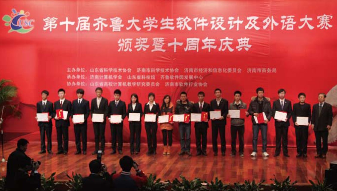 为拓展计算机专业人才培养的新型模式,为企业提供一个发现发掘优秀人才的平台,市商务局、市科技局、市经信委、市科协等联合,共同组织推出了齐鲁大学生软件设计及外语大赛。该项赛事是面向高校计算机与信息专业在校大学生举办的年度性赛事,从2003年开始举办,时至今日,历经10年发展,齐鲁大学生软件设计及外语大赛现已成为发掘学生潜能、培养举荐人才、整合社会资源、吸引各方关注的品牌工程。其参赛人数多、院校范围广、企业介入深,越来越引起社会关注。