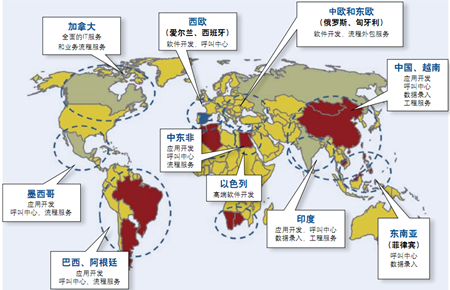 (一) 接包方方面,基于市场、文化、资源优势和对于产业转移机会的把握,多个国家和地区已经初步形成了各自的外包业务特点