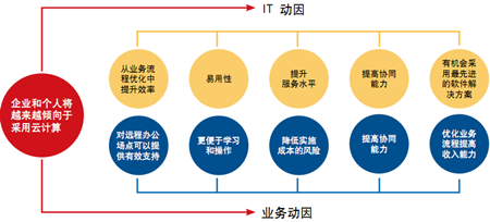 在经济复苏的背景下,IT在企业业务和竞争能力方面所起的作用开始重新成为关注的焦点,而云计算也是推动这一趋势的关键因素。目前,大多数IT工作都可以通过云模型以基础架构、平台和“应用即服务”的形式得以实现。随着云服务交付模式的日趋成熟,更高层面的工作(包括业务流程、咨询、设计和管理)也将实现云服务交付模式。