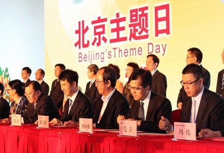 北京日现场,为落实国务院和北京市促进服务外包产业发展措施,进一步优化服务外包企业融资环境,解决企业融资难的问题,海淀区人民政府、北京市海淀服务外包企业协会与中国农业银行/中信银行共同签署了贷款授信协议,旨在搭建政府、金融机构与企业的三方对接平台,这成为京交会一大签约亮点。海淀区人民政府陈双副区长、协会曲玲年理事长与银行代表上台签约。