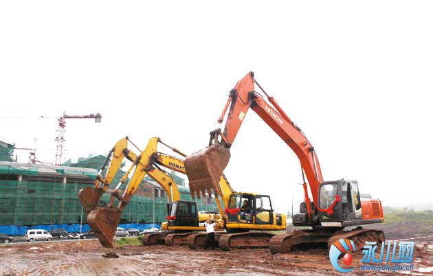 9月12日,施工车辆助阵中国西部声谷服务外包产业园开工仪式。 记者 陈仕川 摄