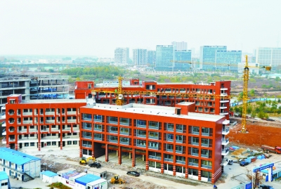 昨天,位于鼓楼区河西新城的南京国际服务外包产业园配套小学主体完工。本报记者 崔晓摄