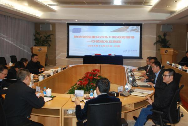 12月30日,方正集团与重庆市永川区《全面战略合作框架协议》签约仪式在京隆重举行,重庆市永川区区长方军,重庆市永川区委常委、区新城建管委党工委书记邓文,方正集团高级副总裁、方正信产集团董事长方中华,方正集团高级副总裁、北大医疗产业集团CEO李国军等出席会议。