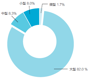 调研数据显示,2014年园区员工主要分布在大型企业,占比82.0%,中型、小型和微型企业员工共占18.0%。