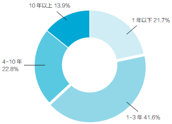 7、园区企业员工工作年限为1-3年最多,占比41.6%;