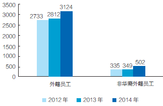 图表47 2012-2014年园区外籍员工数量(单位:人)