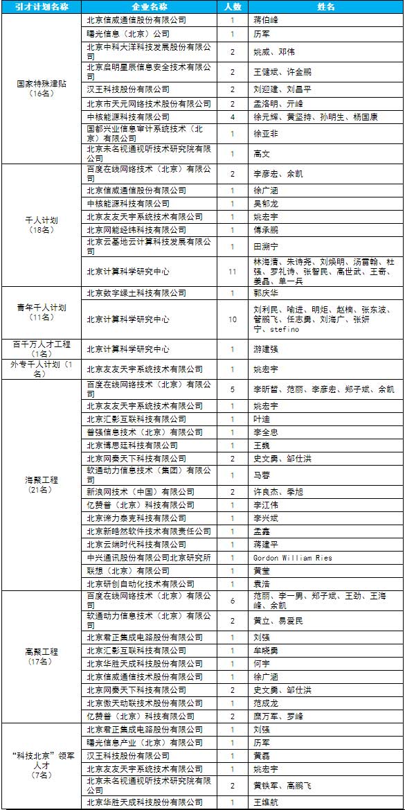 9、2014年园区高端人才共有79人,比2013年增加26人:其中,16人享有国家特殊津贴,18人入选“千人计划”,11人入选“青年千人计划”,1人入选“百千万人才工程”,1人入选“外专千人计划”,21人入选“海聚工程”,17人入选“高聚工程”,7人入选“科技北京”领军人才。