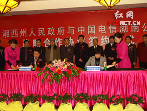 (1月18日中国电信湖南分公司与湖南湘西自治州人民政府正在签订该战略合作协议)