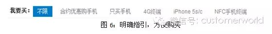 明确的购买需求:对于明确的购买需求,通过细致的产品分类如合约机、单纯的手机等给客户以明确的指引,方便客户购买,并将4G、IPHONE5s等热门类型手机单独列出,方便客户一键直达。