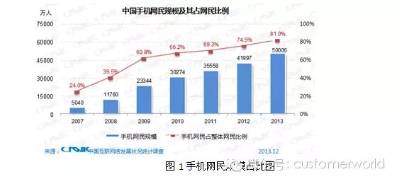 而手机作为上网终端,随着智能手机的发展而愈发凸现其重要性。截至2013年12月,我国手机网民规模达到5亿,较2012年底增加8009万人,网民中使用手机上网的人群占比提升至81.0%。作为电信运营商,有必要借此契机,尽可能与客户接触服务客户,发展业务,提升效率,节约人员,降低成本。