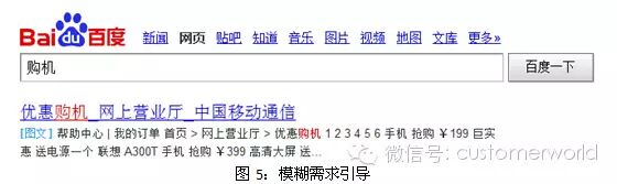 抓住模糊需求:对于客户模糊的消费需求,如购买终端,在baidu中输入“购机”,即可将客户需求引导到公司官网,进行优惠购机选购。
