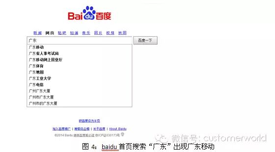 激发浏览需求:针对客户的消费发展,可以紧扣客户消费阶段的入口,将其引流到我公司网站。如通过SEO技术,优化使得baidu搜索首页在输入广东后第一个默认选项是“广东移动”,最大限度地激发客户的浏览需求。