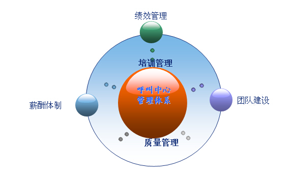 一、绩效管理。绩效管理是呼叫中心的管理 体系的心脏部份,在绩效管理体系中,需要重点考虑两大部分:一是管理人员的考核指标,二是普通员工的考核指标。管理人员的考核需要结合岗位职责,进行相应的指标管理;而座席员的考核是重点,一般来说,通过五大环节的指标提系来提升员工的工作热情和工作效率。这五个环节分别为工作量、工作效率、服务质量、练功考试、出勤情况。对于呼叫中心的运营管理来说,这五个环节和人的五官一样,每个环节都有自己的用途,既相互需要,又独立存在。